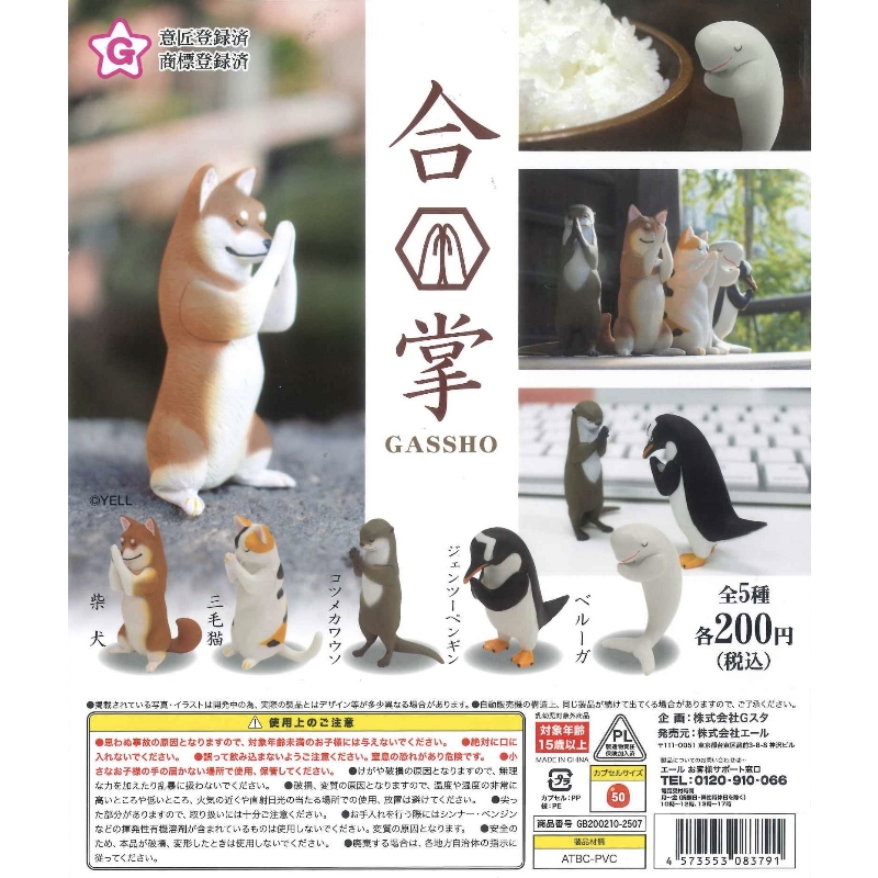 品名:轉蛋 扭蛋 YELL 動物合掌 五款一套