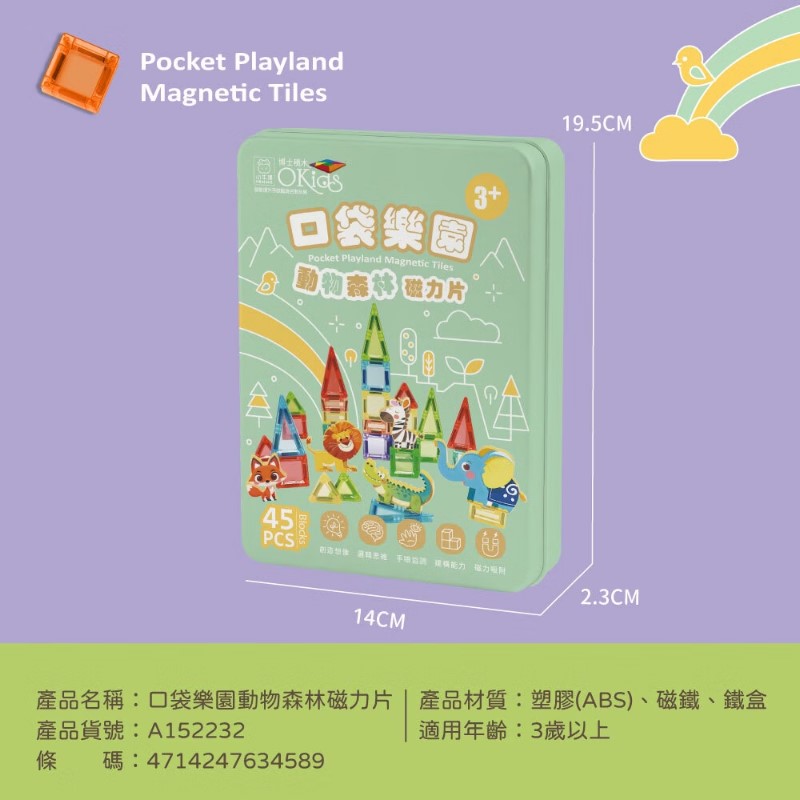 品名:小牛津 博士積木 口袋動物森林磁力片 45P