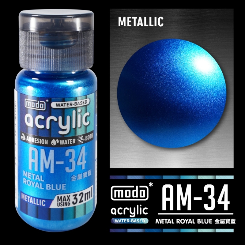 品名:摩多製漆所 MODO acrylic 水性漆 AM-34 32ml 金屬寶藍